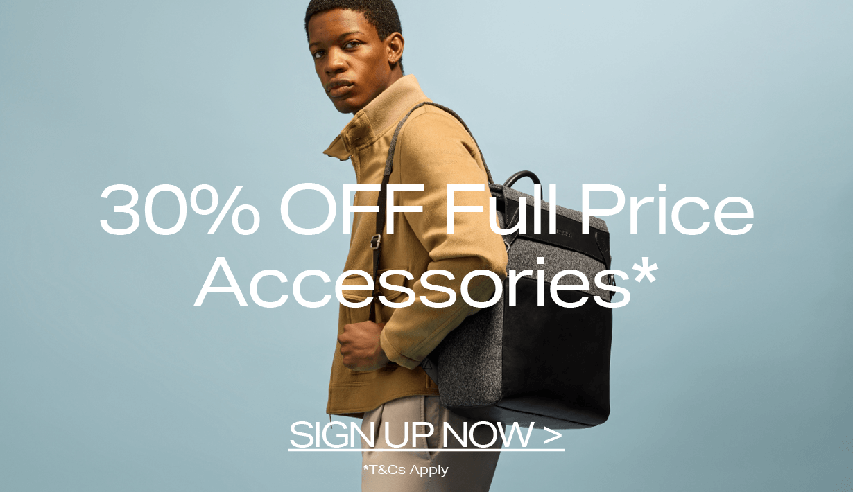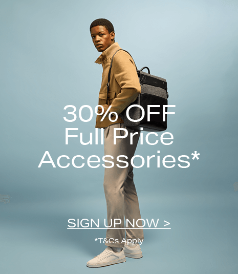 Polish off your outfit with our range of men's accessories to compliment your style. From bags to belts, our range of stylish accessories will dress you up for work and down on the weekends.